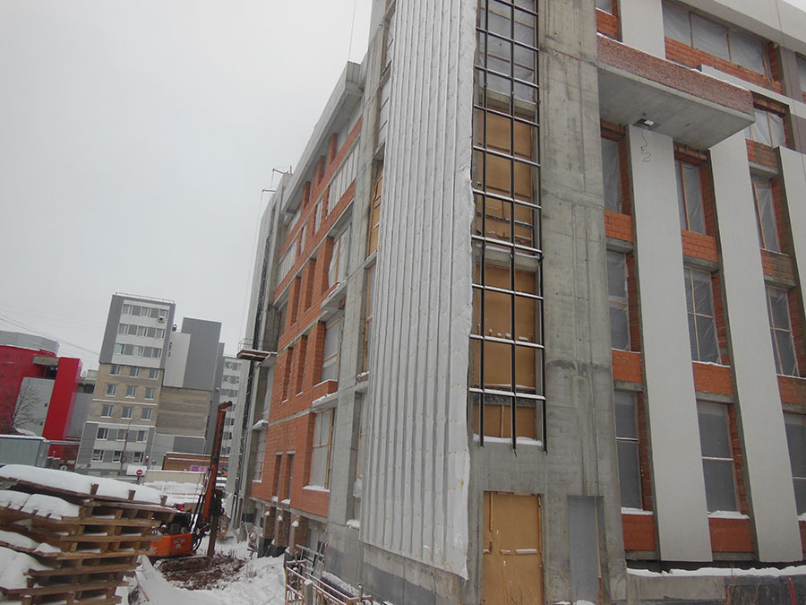 На нулевом этаже ведутся работы по оснащению ИТП (индивидуальный тепловой пункт) – выполнено 80% от запланированного объема. Также проводятся работы по проведению общеобменной вентиляции. В течение ближайшего времени будут закончены работы по установке перегородок на всех этажах здания.