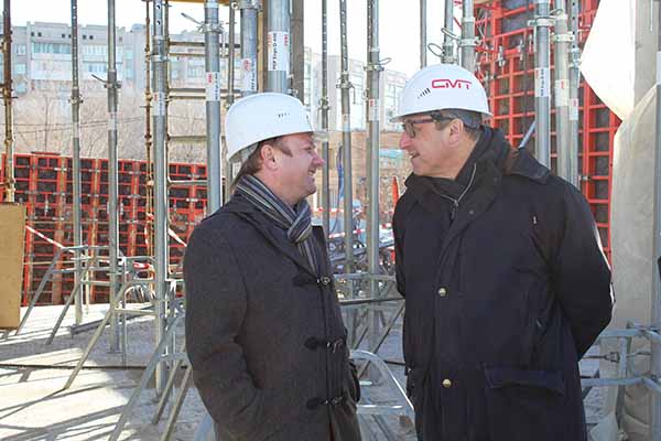 Строительство объекта идет в строгом соответствии с графиком. На данный момент полностью закончены работы по заливке фундаментной плиты, а также по укладке бетонной смеси и перекрытий цокольного этажа. Ведутся монолитные работы на первом этаже, о чем красноречиво свидетельствовал движущийся кран, - строительстве не останавливается ни на минуту, ведь сдача готового пятиэтажного здания планируется на декабрь 2015 года.
