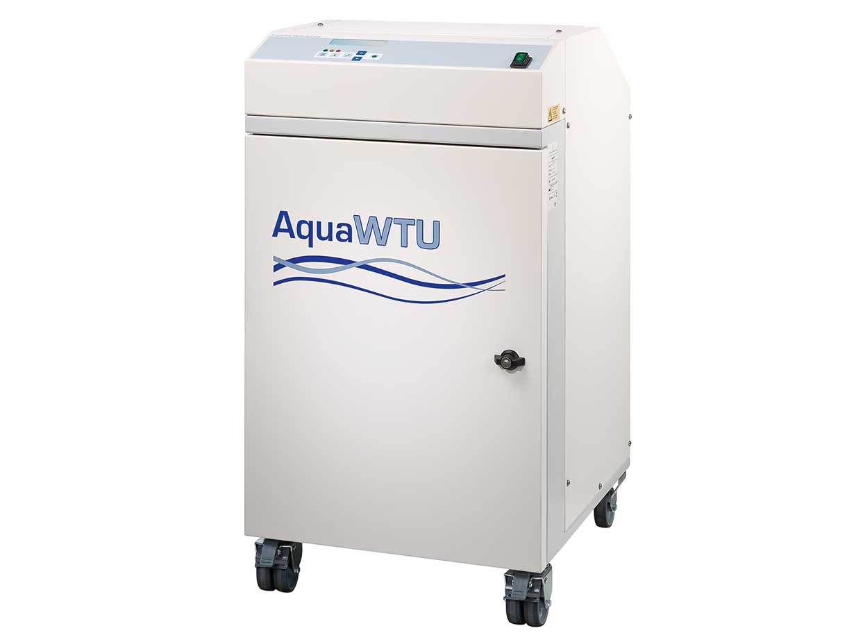 AquaWTU – компактная система водоподготовки, которая включает предварительную подготовку воды, обратный осмос и распределение. Стандартная предварительная подготовка включает в себя фильтрацию через фильтр 10 мкм, контроль объема / добавление смягчителя, обработку ультрафиолетовым светом и фильтрацию через угольный фильтр 5 мкм. При необходимости, имеется возможность установки дополнительного фильтра.
